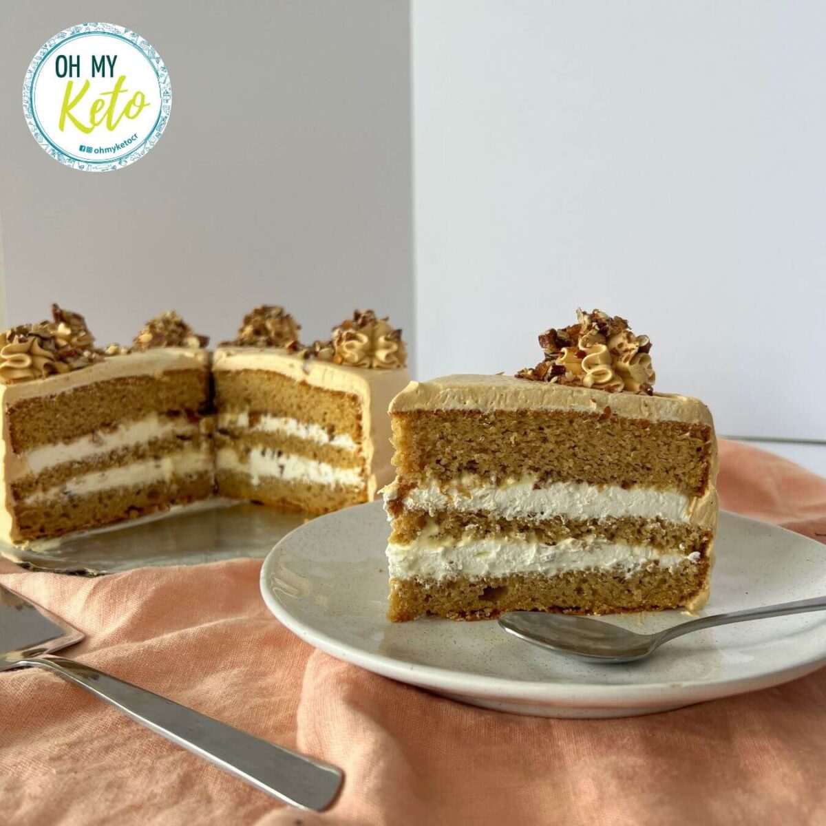 Queque a base de harina de almendras, relleno de nuestra leche condensada, crema batida y nuestras semillas caramelizadas